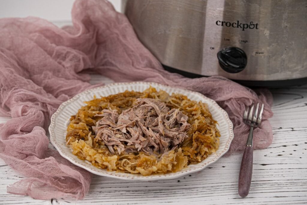 This slow cooker pork and sauerkraut is the simplest way to enjoy the New Year’s Day favorite. Get perfectly tender, juicy pork with no extra steps!